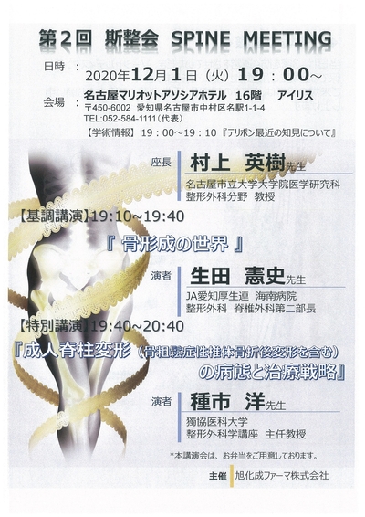 2020年12月1日(火)19時から名古屋マリオットアソシアホテル16階「アイリス」にて第2回斯整会SPINE MEETINGを開催します。