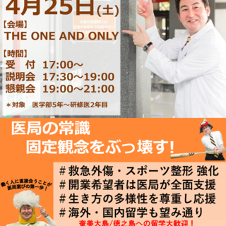 日時:2026年4月25日(土)説明会17:30~19:00(受付17時~) 懇親会19:00~